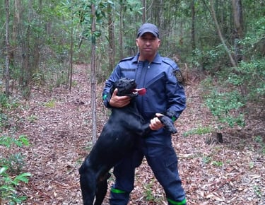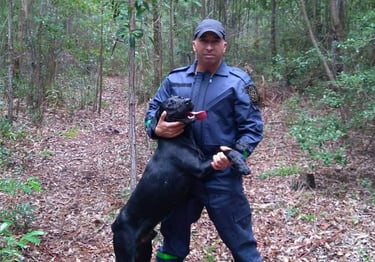 Cães treinados para detecção e resgate em situações reais.